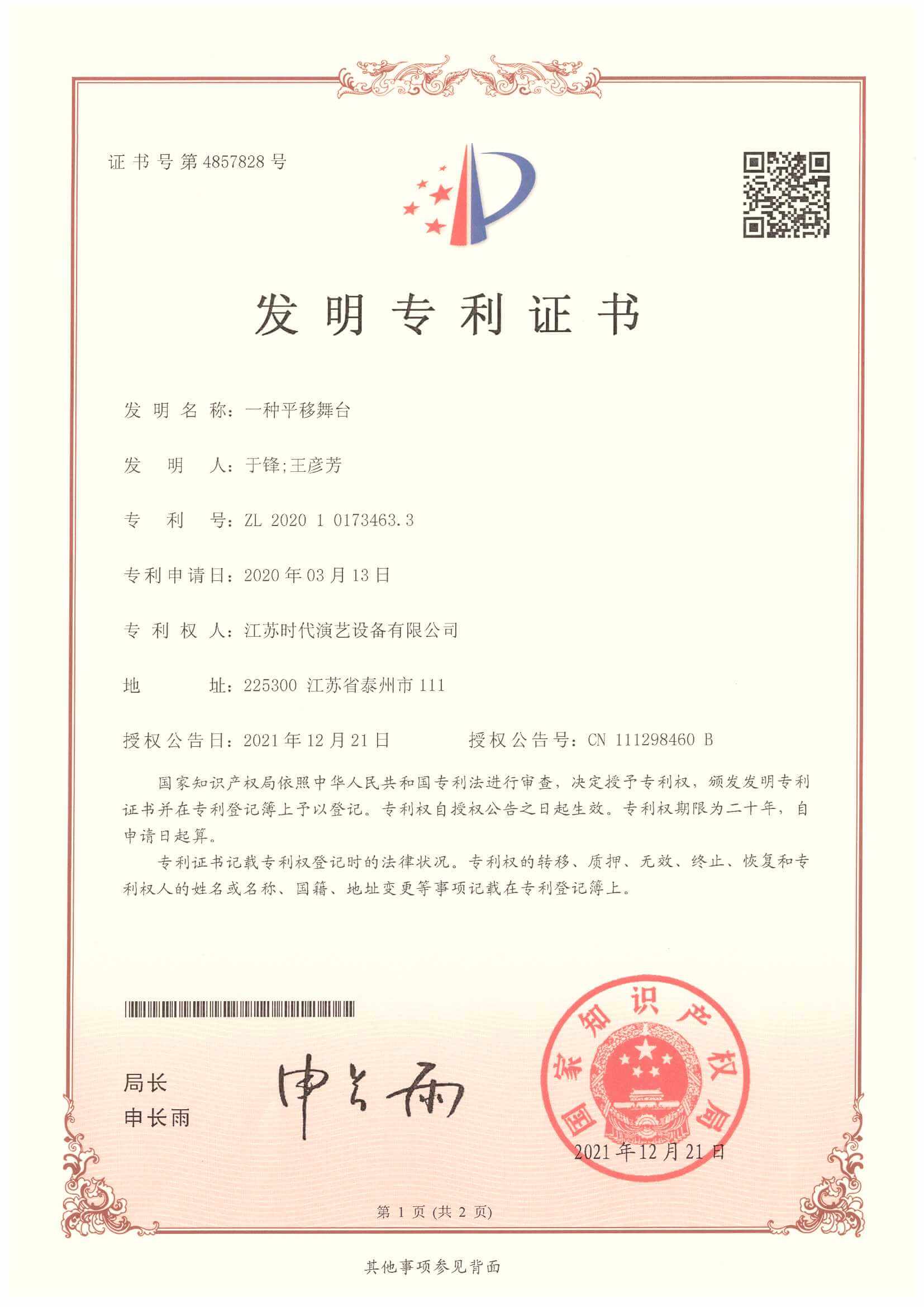 發(fā)明專利-一種平移舞臺
